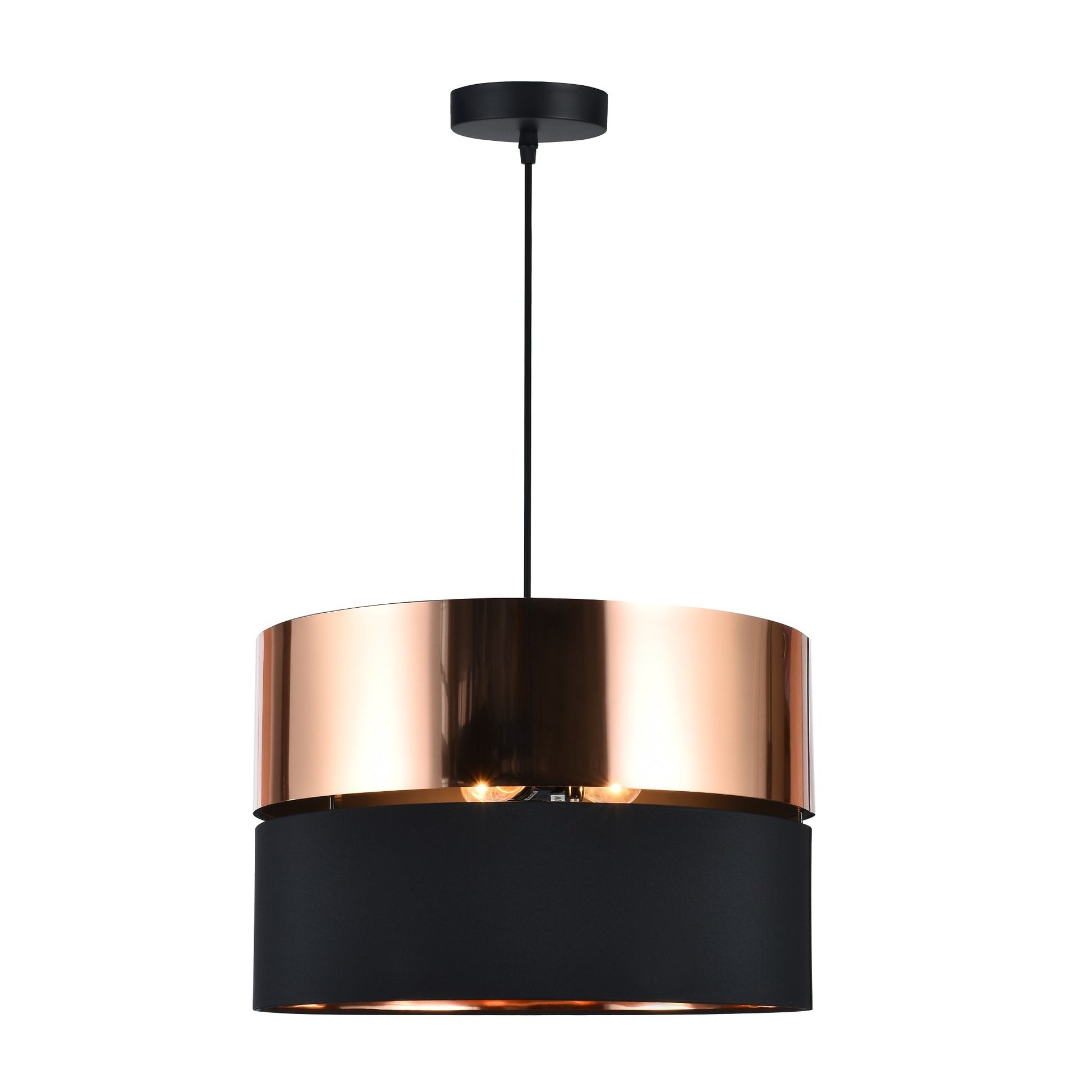 LÁMPARA MINIMALISTA COLGANTE NEGRO Y COBRE E27 40W 40cm DE DIAMETRO
