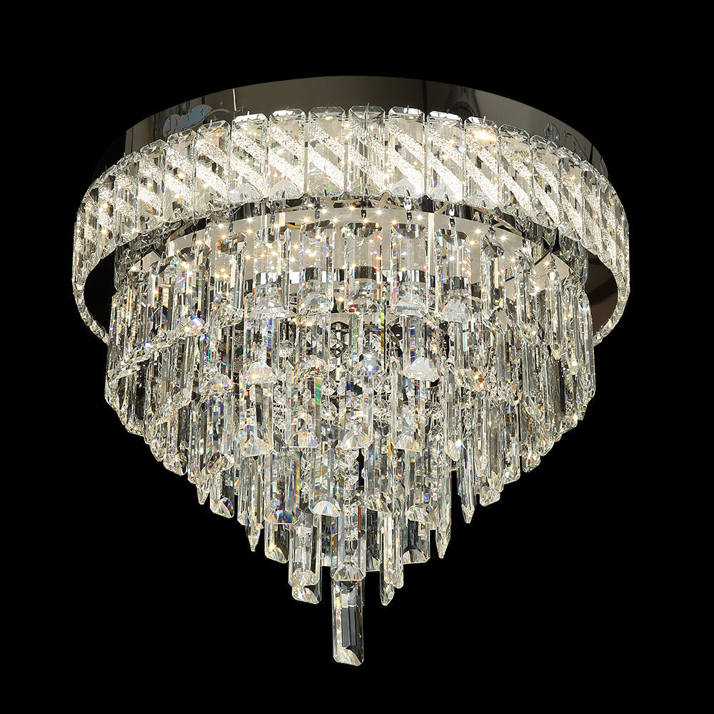 \nCon sus dimensiones generosas, este candelabro es perfecto para espacios grandes como salones, comedores o vestíbulos. La combinación de cristales brillantes y la pantalla de vidrio claro crea un efecto deslumbrante que iluminará cualquier habitación y añadirá un toque de lujo y elegancia. Ya sea que se instale en una casa moderna o en un entorno más clásico, este candelabro se adaptará perfectamente y añadirá un toque de glamour a cualquier espacio.